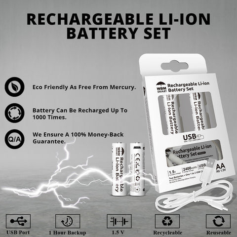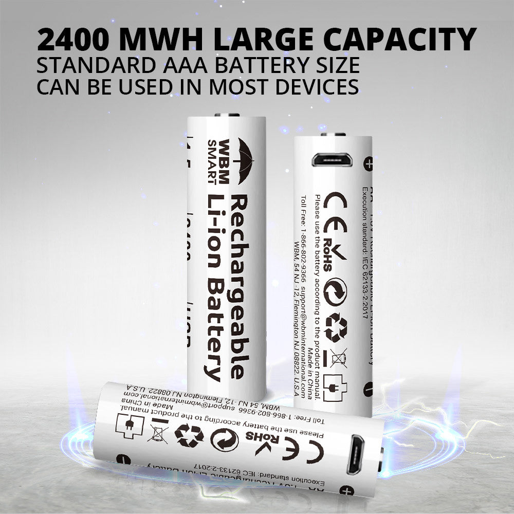 FEATURES: These Rechargeable Cells have 1.5h charging time, USB easy charging, 1.5V full CV discharge, 2400mWh energy storage, and 6 months standby time